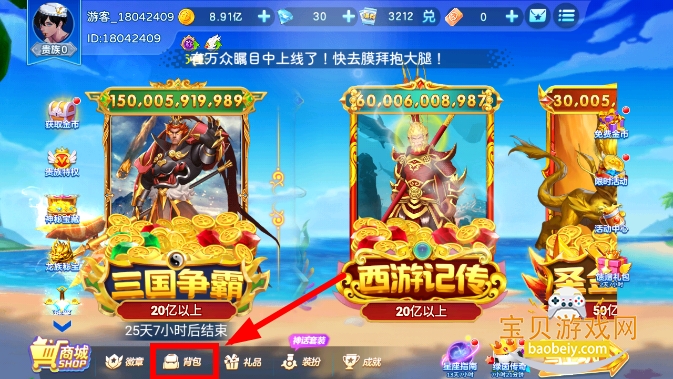 1、改名字非常简单,不过也是有条件的,首先我们来到捕鱼首页,点击头像,或者点击背包。