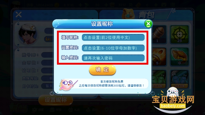 3、这里就能修改名字啦,首次修改名字免费,不过之后每次修改名字都需要消耗300钻石,请谨慎修改。