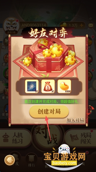 2、点击屏幕中的“创建对局”。