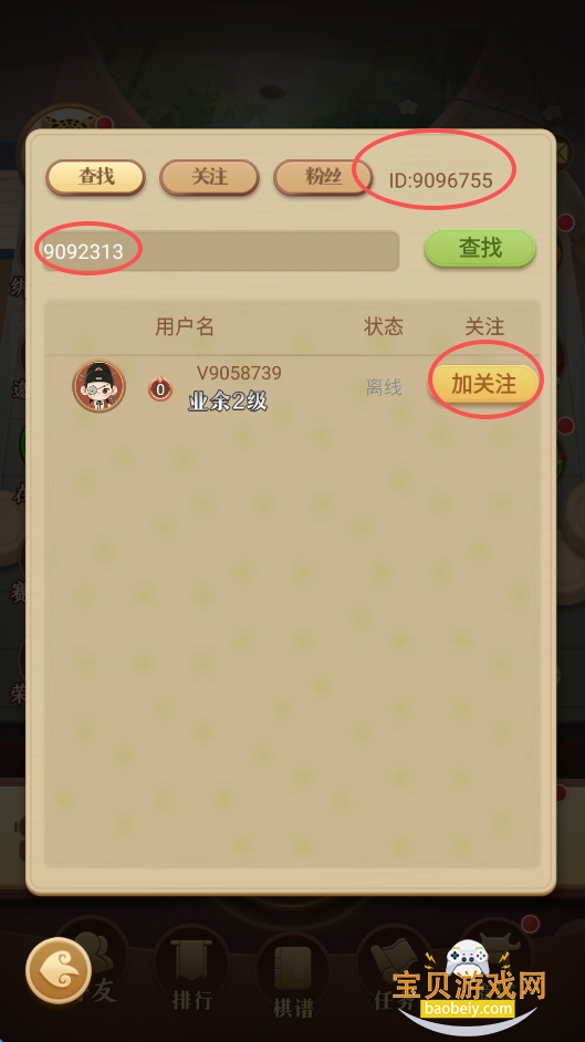 8、每个账号都有一个唯一的ID,也就是屏幕右上角的“ID”,在输入框中输入朋友的ID,点击查找,随后再点击关注就可以了。