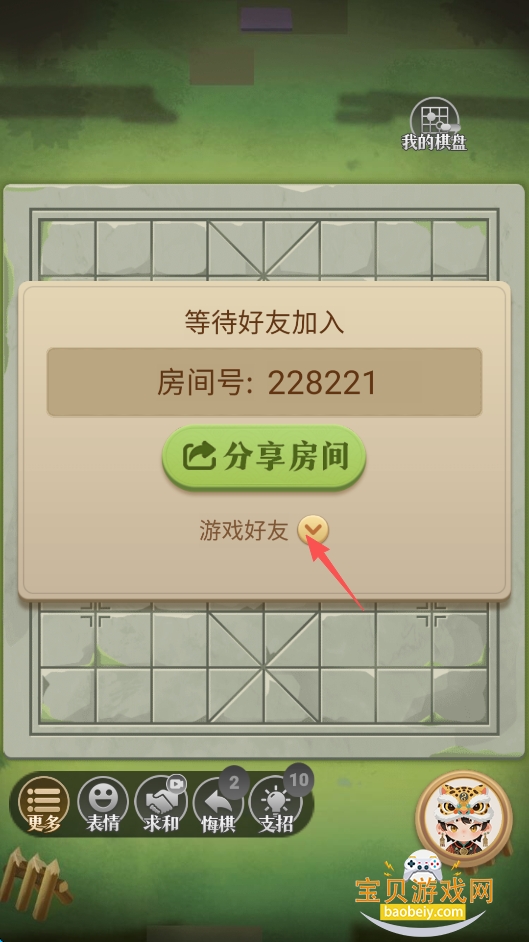 9、随后创建房间,到这一步,点击“分享房间”下的“游戏好友”。