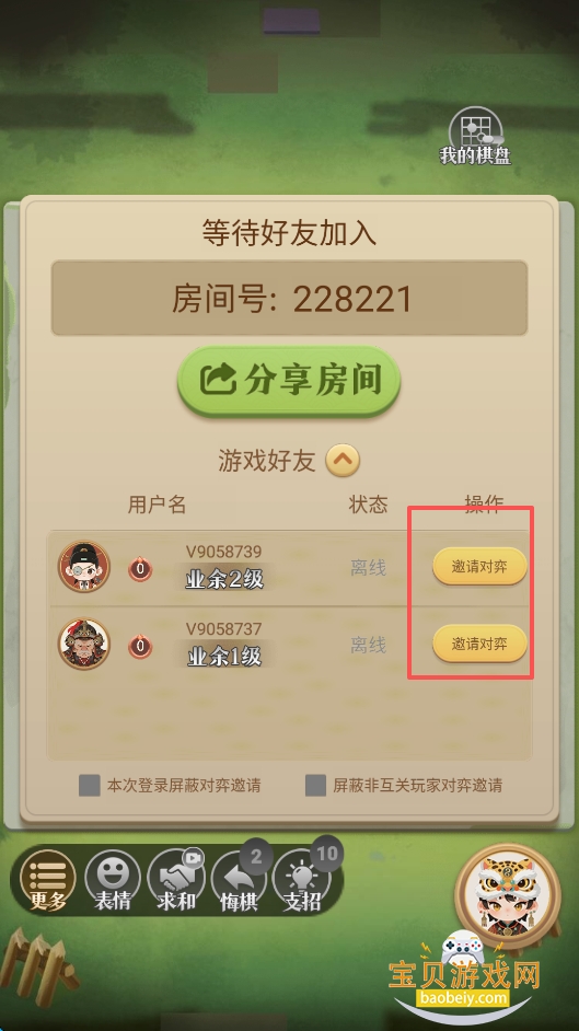 10、点击“邀请对弈”,等待朋友同意,就可以直接开始了。