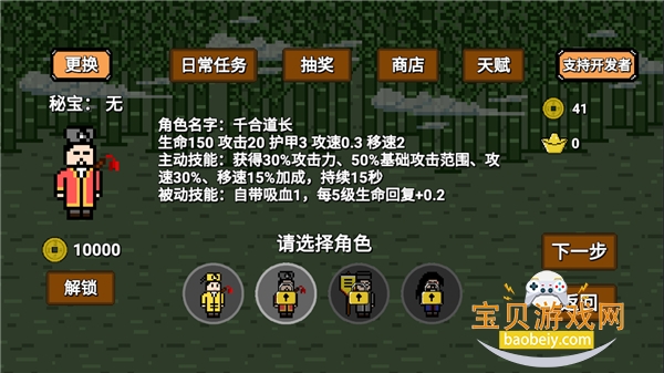 1.一个礼包,俩广告,基本上天赋就满了,能刷到阴阳剑最好,注意走位,然后四目开局,傀儡优先,其次八卦镜,会让容错率大大提升,