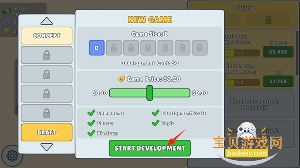 4、随后设置游戏的价格,点击屏幕下方的“START DEVELOPMENT”,开始开发。