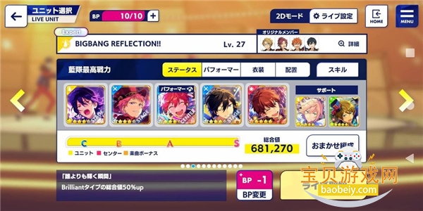 这个是与歌曲不同色的队伍配法,总战力为:681270
