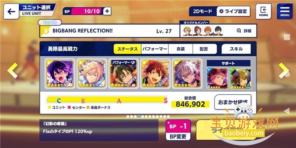 假设我要打「BIGBANG REFLECTION!!」的属性为「Flash (黄色)」,那原则上,我选择成员的条件就以「Flash属性」的卡为准。