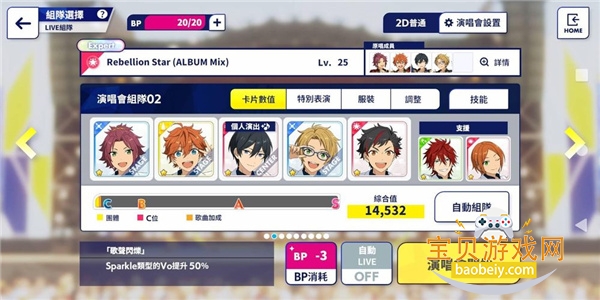 玩家可以在这个模式中以超真实3D角色的演唱会场景为背景,体验节奏音游,四种难度供你选择,不论是手残党还是音游高手,都能找到你的Stage!与此同时,还能享受豪华的3D MV表现和个性十足的他们带来的演唱会!游戏中支持玩家自由地设置C位和其他表演成员,给成员换装搭配,欣赏自己pick的角色带来的专属SPP表演,绽放独一无二的光彩!
