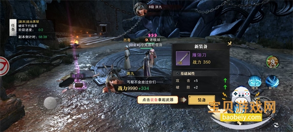 4、副本战斗结束后有概率掉落全新装备,例如“雁翎刀”。点击【装备】即可一键替换当前装备,快速提升角色战力。