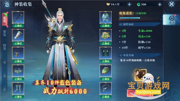 通过收集并穿戴10件蓝色品质装备,可一次性获得大幅战力加成,整体战力直接提升约6000点,是前期提升实力的重要途径。