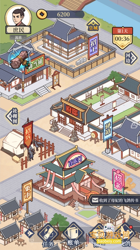 1.初期资源积累:进入游戏后,优先前往招工市场承接搬砖等基础劳务任务,快速获取启动资金。同时,通过“飞鸽传书”系统与各阶层NPC展开对话交互,获取任务线索与商业情报,例如与柳清云等关键NPC建立联系,解锁隐藏剧情与资源。