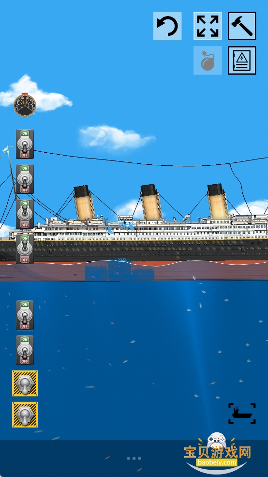 5、底部工具栏的锤子、电锯等工具,是破坏船体的核心道具,点击对应工具即可对船体进行切割、敲击等操作。