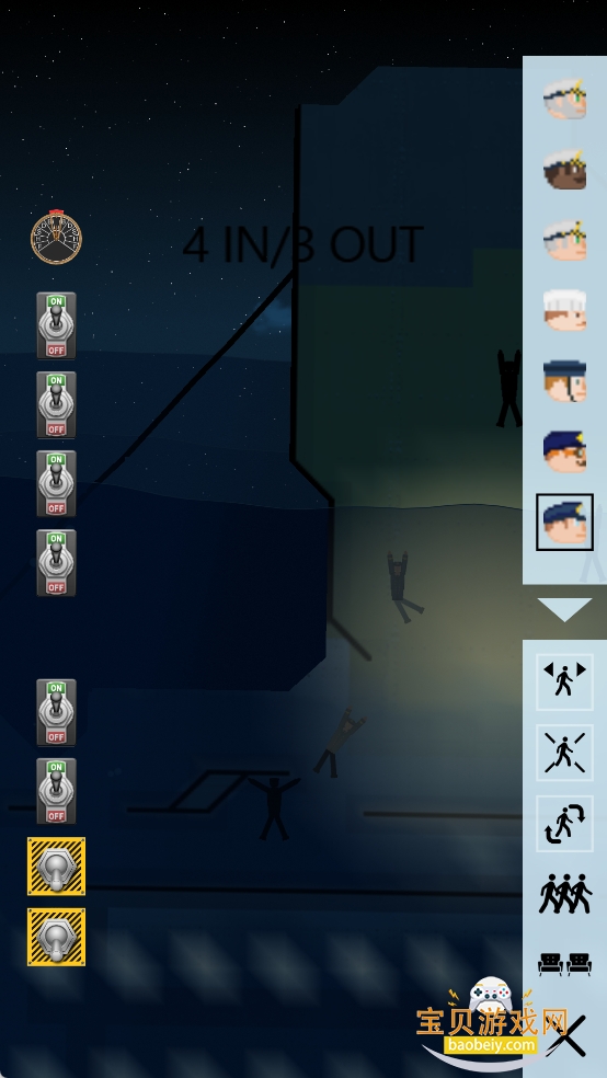 4、右侧的角色选择与指令按钮,可安排人员在船体上执行动作,模拟人员在船体失稳时的反应。