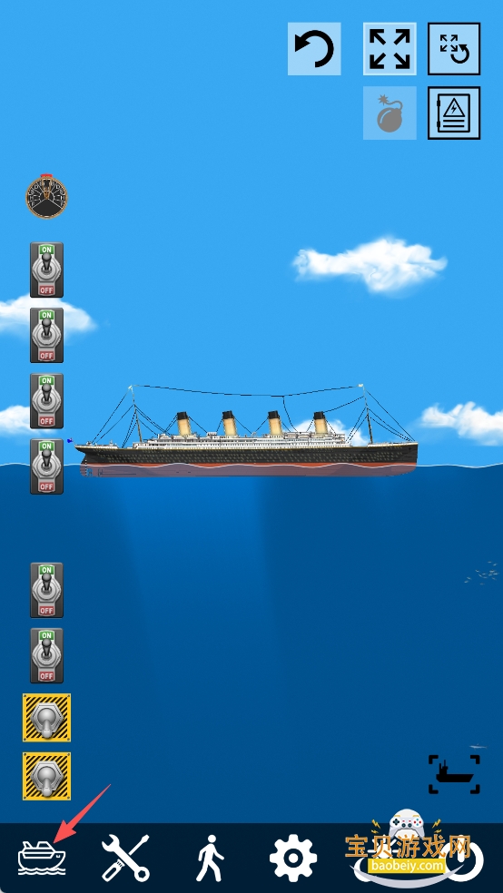 2、点击下方的船,可以进行切换,里面包含了泰坦尼克号,还可以可切换船体视角,方便观察不同角度的结构变化,配合开关调整更高效。