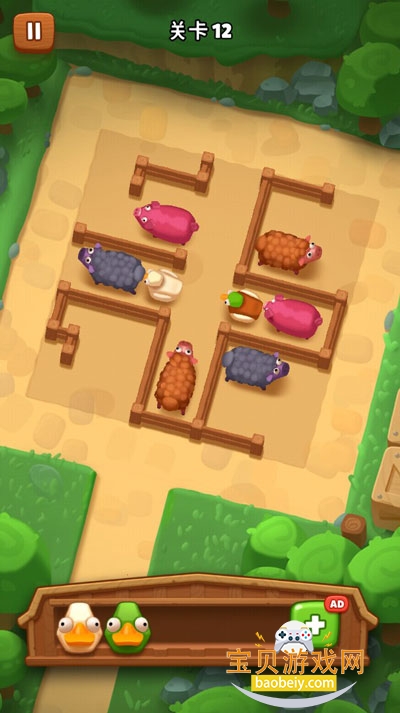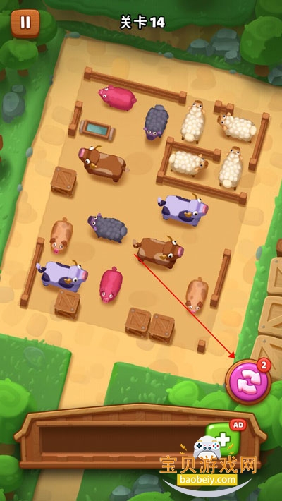 1、进入游戏后,你需要移动栅栏里的动物将所有动物都赶出来进行两两匹配