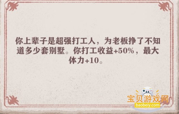 在低光环的情况下,属性不足,打工收益较低。狩猎之王可以在前期快速获得金钱,购买需要的物品。