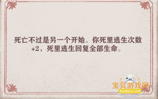 一般不推荐使用,诚然,死里逃生是高残不可避免的工具,但大量逃生堆积的通关证明的是本身数据(包括面板,天赋,技能,遗物)的不足。换句话说,只有不懂得搭配面板,天赋,技能,遗物且无法通关(俗称菜)才推荐这个天赋。这个天赋在一般情况下是不强的,因为携带这个天赋意味着平时的回合中只有两个天赋,这会严重影响发育节奏。最后面板,技能,遗物上的差距已经大于死亡回归带来的收益了。