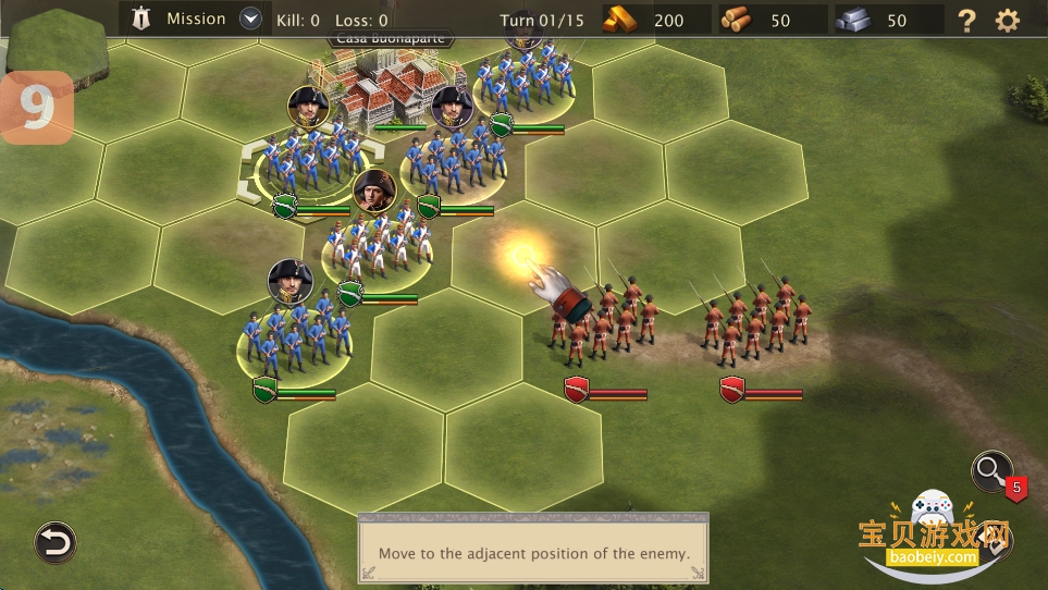5、然后将士兵移动到敌方部队相邻位置;