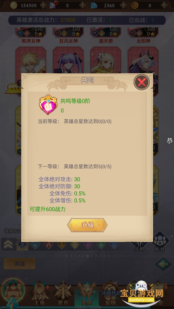3、下面对已经上阵的英雄进行升级、突破、装配符石以及激活共鸣等操作