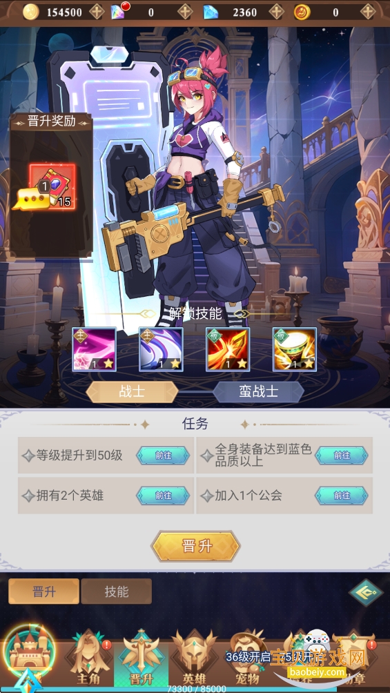 2、进入到晋升界面,完成相应的任务后可以直接晋升职业,同时还会解锁专属技能