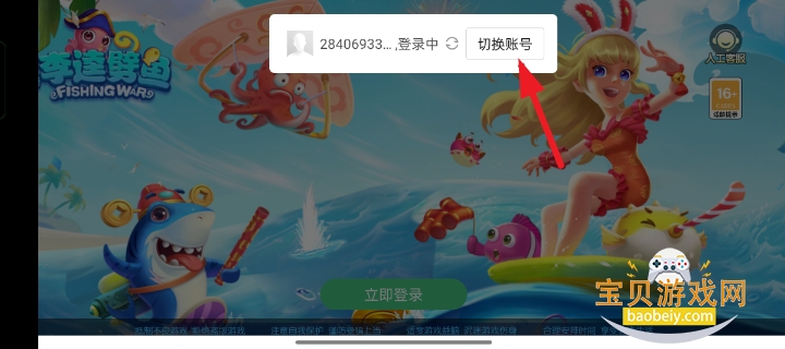 2、打开游戏来到登录界面,这时游戏会自动登录,玩家需要及时点击游戏上方的切换账号,如下图所示。