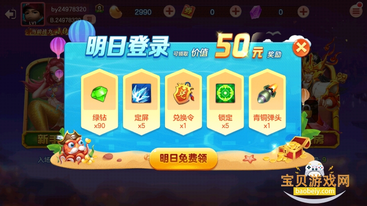 3、新人一登录就有礼包领取,非常给力,有可能你还不会捕鱼,凭借这些礼包你能快速成长。