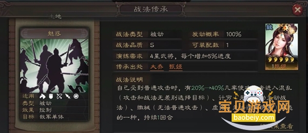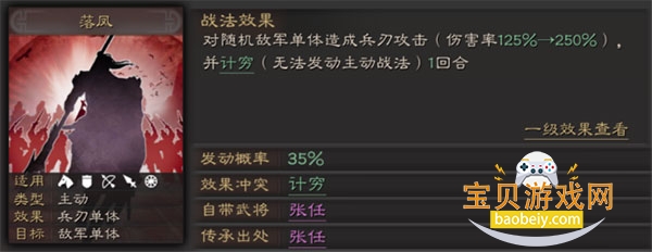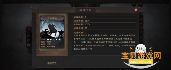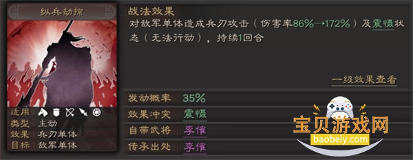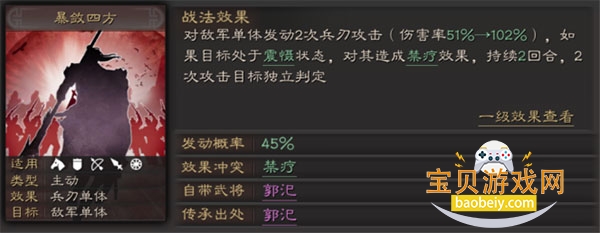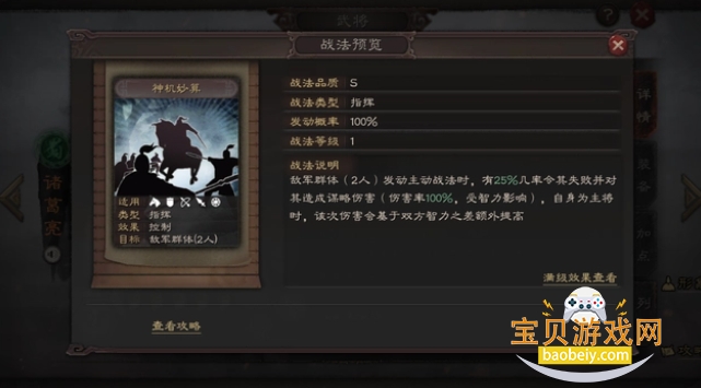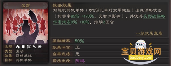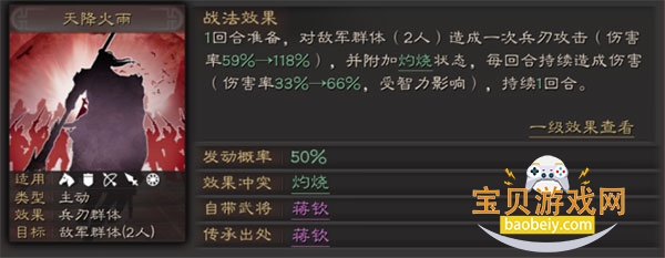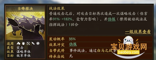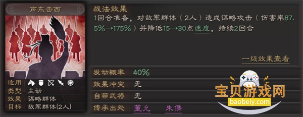 较高的伤害,附带减速。很实用的战法。谋略系通用。