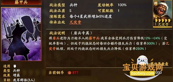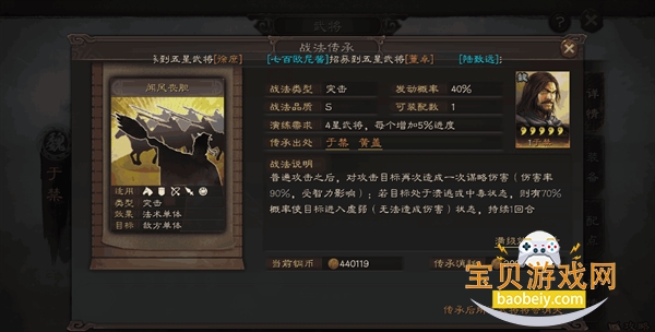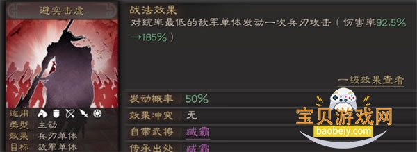 拆一个战法装备两名武将,性价比高。但本身收益很低,很烧钱吃战法点,建议有好的搭配和充裕的资源后再拆。中后期满大街缴械,突击类输出环境很不友好,三思。