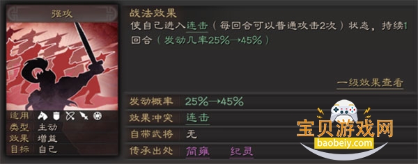 稳定且不吃控的输出,非常适合搭配首充送的孙坚。对于大多数人,我不是很推荐这种被打才触发的伤害战法,除非有很强力的回复或者减伤战法。