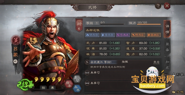 1、吕蒙作为吴国核心武将之一,其兵种获取与搭配是游戏中的重要策略环节。在吕蒙具备枪兵S、弓兵A的兵种适性,这使得他在阵容搭配上具有较高的灵活性。吕蒙的兵种获取主要通过武将本身的兵种适性系统实现,无需额外解锁。作为初始设定,吕蒙默认拥有枪兵S级和弓兵A级的兵种适性,这意味着他可以统领这两种类型的部队。吕蒙的兵种适性决定了他最适合统领枪兵部队,其次是弓兵部队,这种特性直接影响着阵容搭配的方向。在实战中,枪兵的高攻防属性与吕蒙的控制能力相得益彰,而弓兵则能发挥其谋略输出的优势。