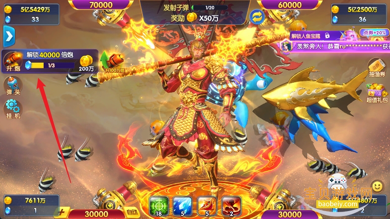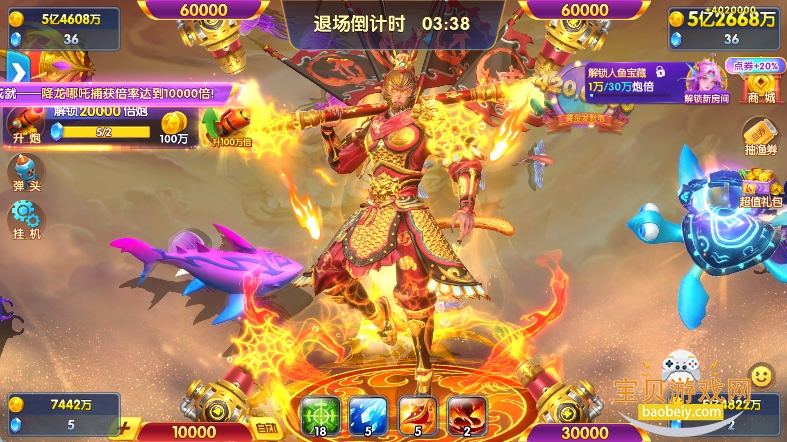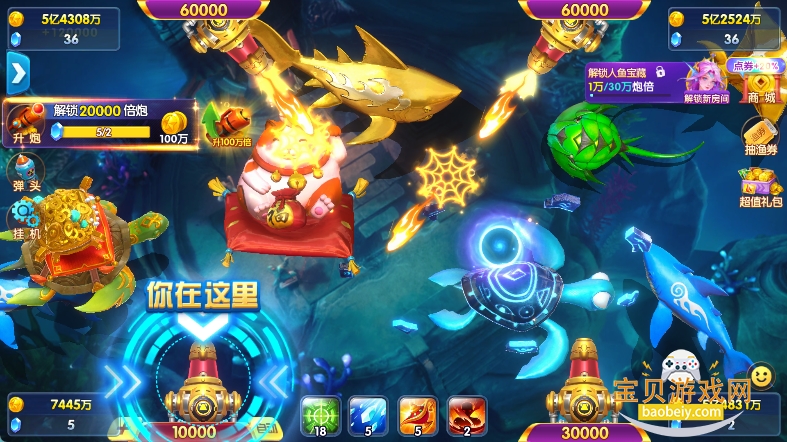 5、万人同时在线,四人同屏捕鱼一起挑战大boss。