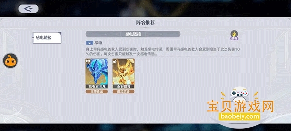 蓝电霸王龙的推荐队友为金羽猫鹰,借助武魂羁绊感电链接,可触发感电传递,提升伤害效果。
