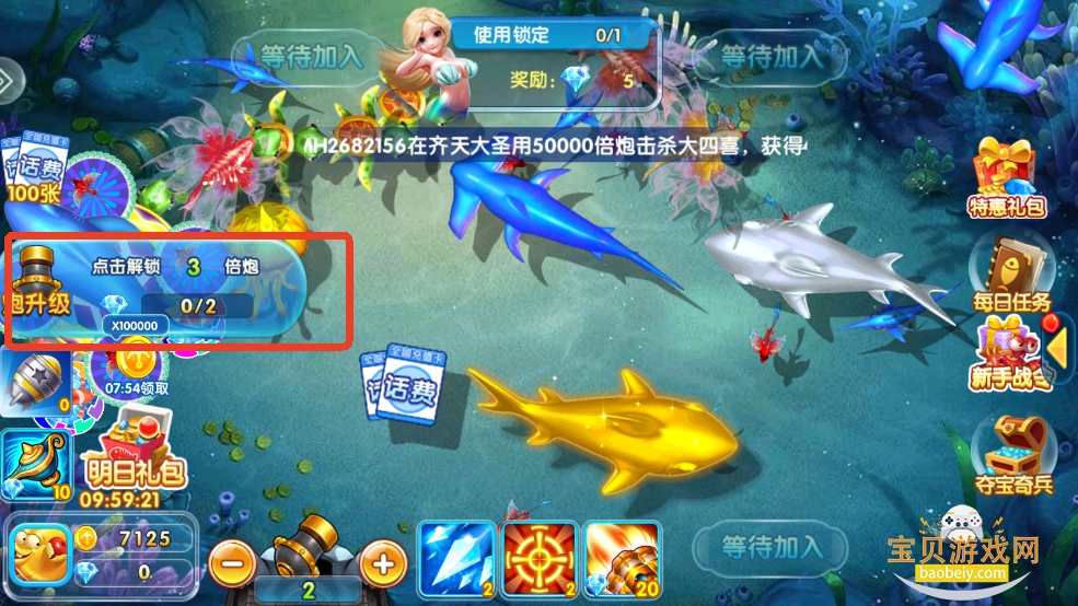 4、渔场会出现奖金鱼、普通鱼和特殊鱼。