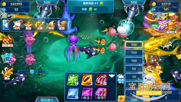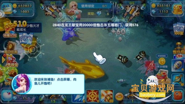 点击屏幕发射炮弹捕鱼,完成发炮次数任务还能领取奖励。