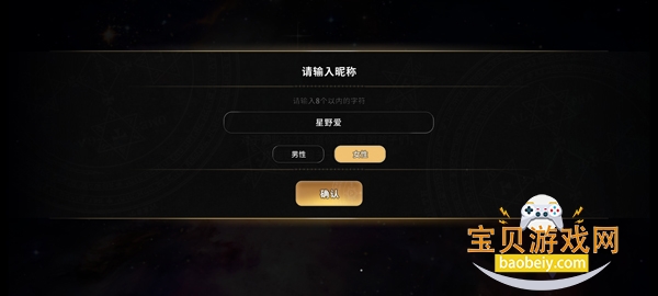 2、首次进入的玩家需要创建角色,设置昵称并选择人物性别。