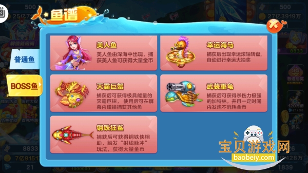 3、万炮来袭:游戏中提供多种炮塔,让玩家感受不同级别的捕鱼快感。