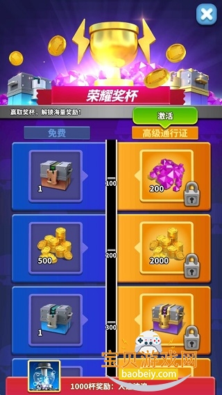 在竞技模式中,玩家的奖杯达到一定的数量是可以获得兵器宝箱、传奇宝箱以及直接的传奇卡,所以努力冲奖杯也是一个好的方式。