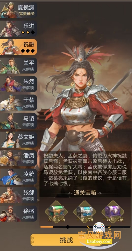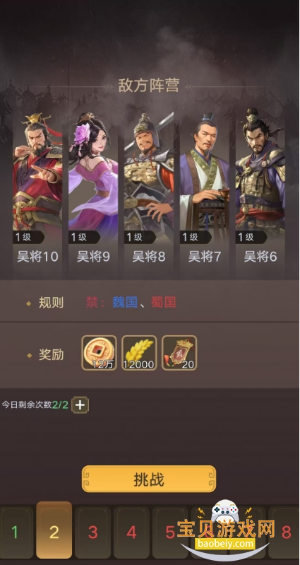 名将挑战,可获得大量的经验与资源道具,其中部分挑战是需要根据等级解锁,每日可免费挑战6次,可通过元宝购买次数,每通关一关可领取一个宝箱,达到指定总星数还可以额外开启宝箱。
