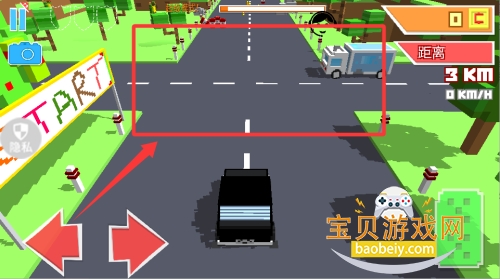 2、沿着道路行驶时注意前方弯道,提前减速慢行,看到加速带或道具及时压上去获取动力加成。