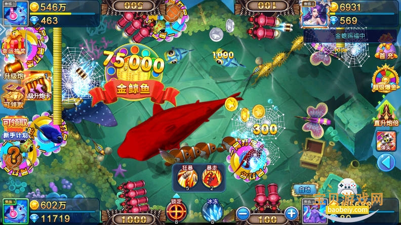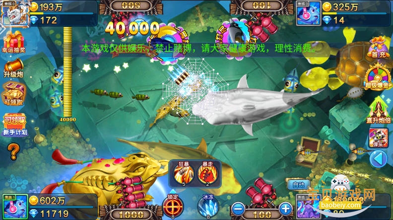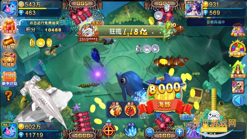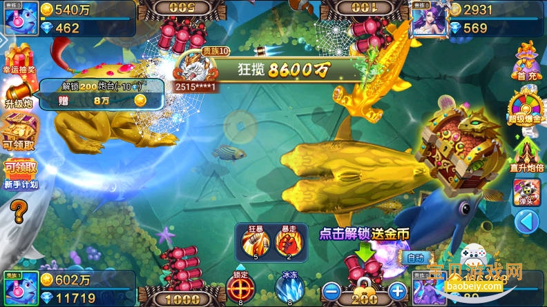 1、万炮房、千倍暴击、定屏、全屏炸弹等,让您体验壕的滋味!