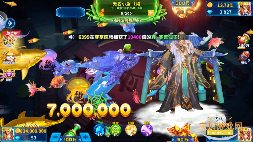 捕获龙太子得龙鳞,即可开启龙舟!满屏爆鱼得万金!还有可爱“金童”、“玉女”等您来捕获哦。