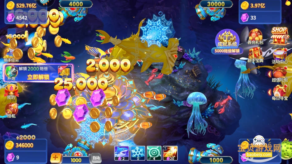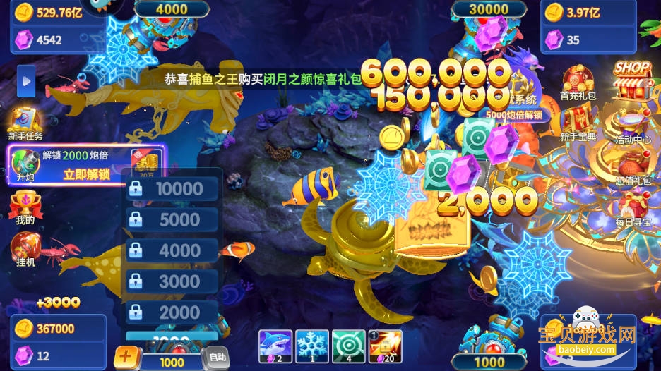 4、完成特定任务后,玩家将解锁新的渔场,体验更多捕鱼乐趣。