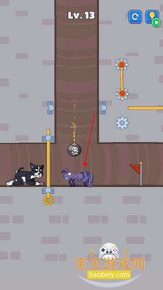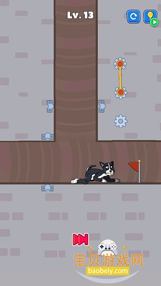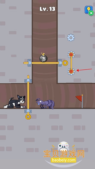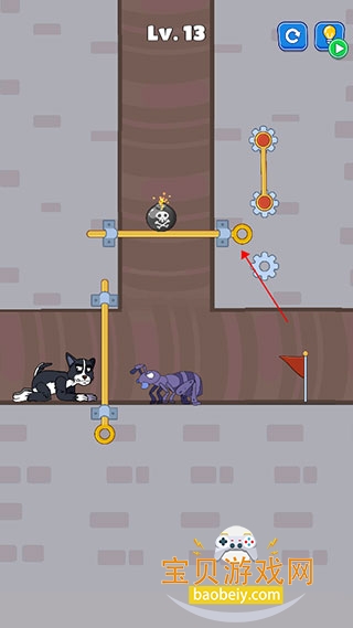 1、下载后打开进入游戏,我们以13关为例,首先先把这个拉杆往上移动
