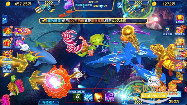 玩家可以使用不同的技能,比如出现4倍金币、冰冻功能等,这些技能可以帮助玩家提高赚钱的效率。玩家需要根据不同的情况选择合适的技能,提高游戏胜率。