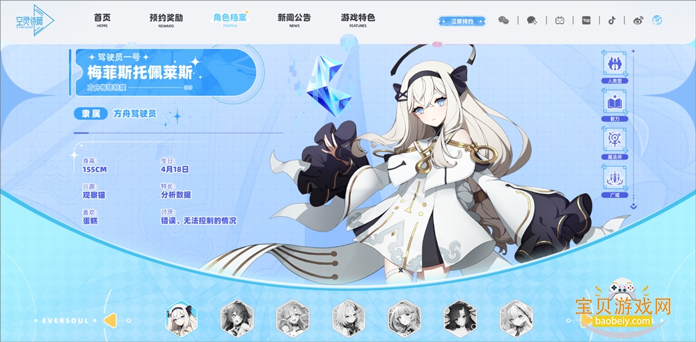 核心信息:身高155CM,生日4月18日,擅长分析数据,喜欢蛋糕,讨厌错误/无法控制的情况,隶属方舟驾驶员团队。