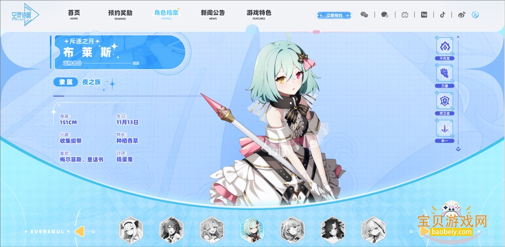 核心信息:身高151CM,生日11月13日,擅长种植香草,喜欢收集缎带/童话书,讨厌捣蛋鬼,隶属夜之族。
