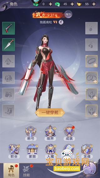 3、点击角色可以看到当前角色属性、穿戴装备等信息