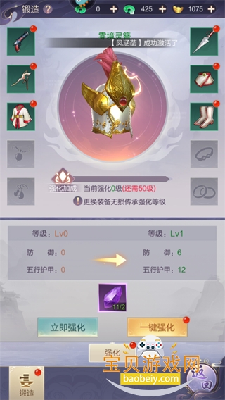 6、我们也可以对装备、宝物进行强化,提升各方面的属性