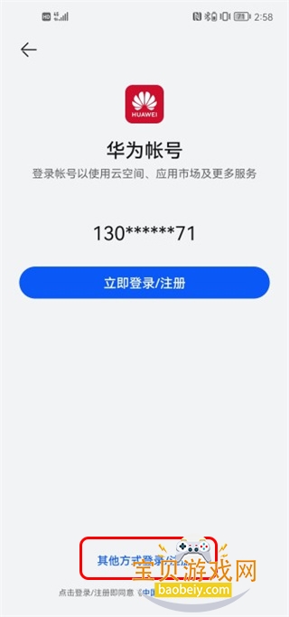 2、选择下面其他方式登录/注册即可;