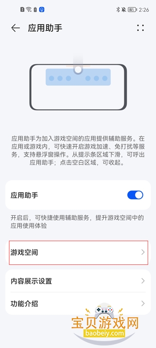 3、切换至新页面后,选择游戏空间这一选项;