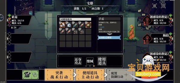 去右下找顺一个钥匙。左下角有一个要死的人,如果你之前顺了福佑药可以直接喂给他,死了直接摸尸就行。来到最上方讲台,如果你之前找赌徒拿了线索就可以发现一个暗道,进去雕像那熄灭两边的火把会出来一个三眼怪,打了获得神话物品八方体,中间雕像那一直拒绝可以获得一个特质,中间的石头拿不拿都行。
